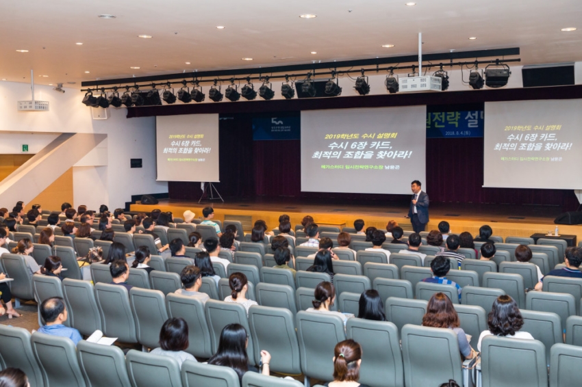 [대학입시설명회] 메가스터디 입시전략연구소 남윤곤 소장이 강사로 나서서 달라진 입시제도, 수시모집 지원 전략 등에 대해 설명했다. (2018.8.)