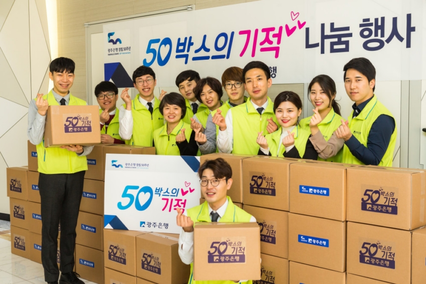 [50박스의 기적] 창립 50주년을 맞은 광주은행이 소외된 이들을 선정해 생필품 박스를 선물했다. 본 행사는 매달 한 번씩 모두 12차례 진행된다. (2018.02.~)