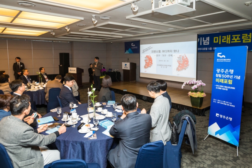 [미래포럼] 연중기획 세미나 ‘미래포럼’을 고객 100여명이 참석한 가운데 진행하여 우리 지역에 닥쳐 온 문제를 현실적으로 진단했다. (2018.02.)
